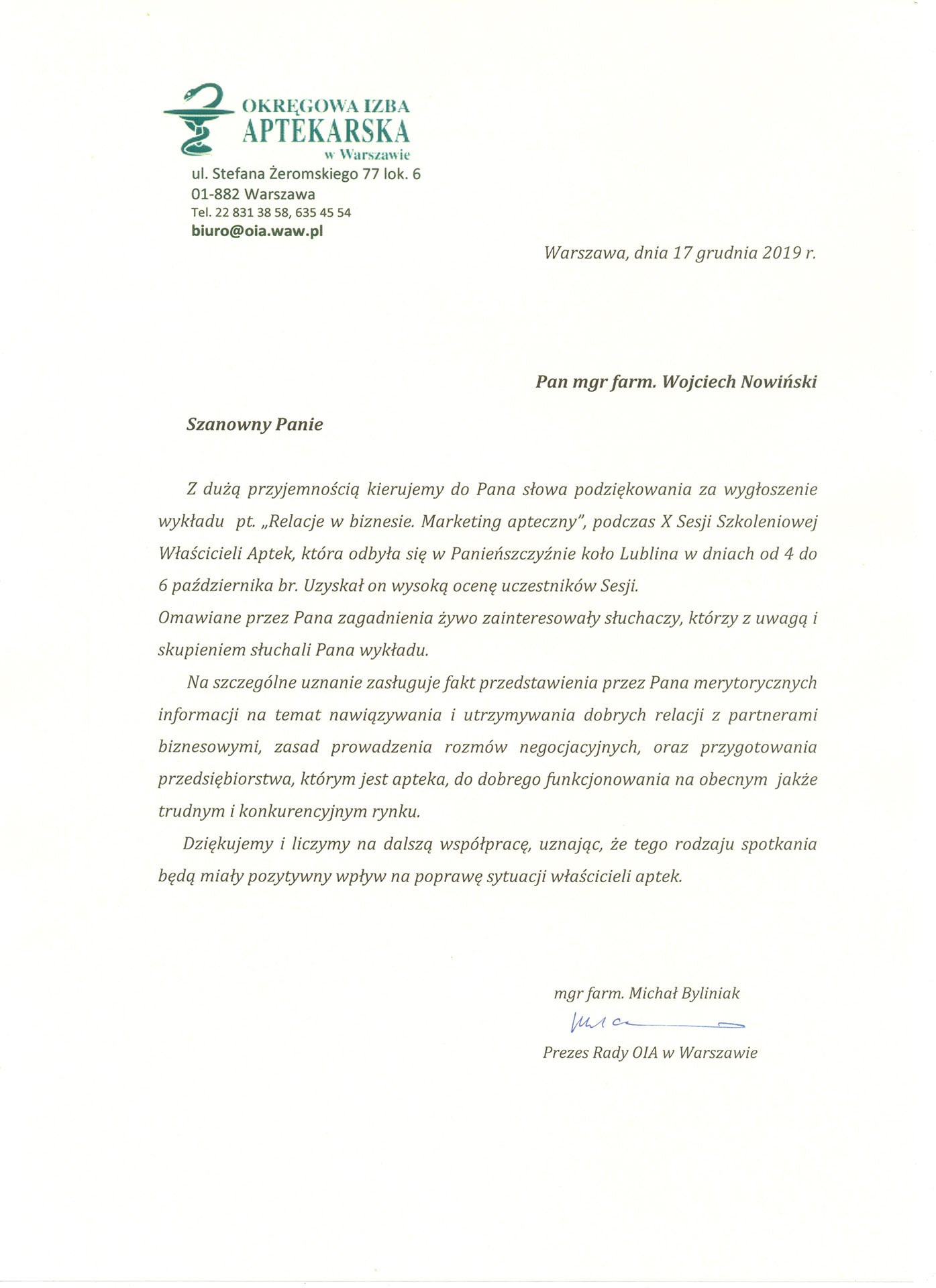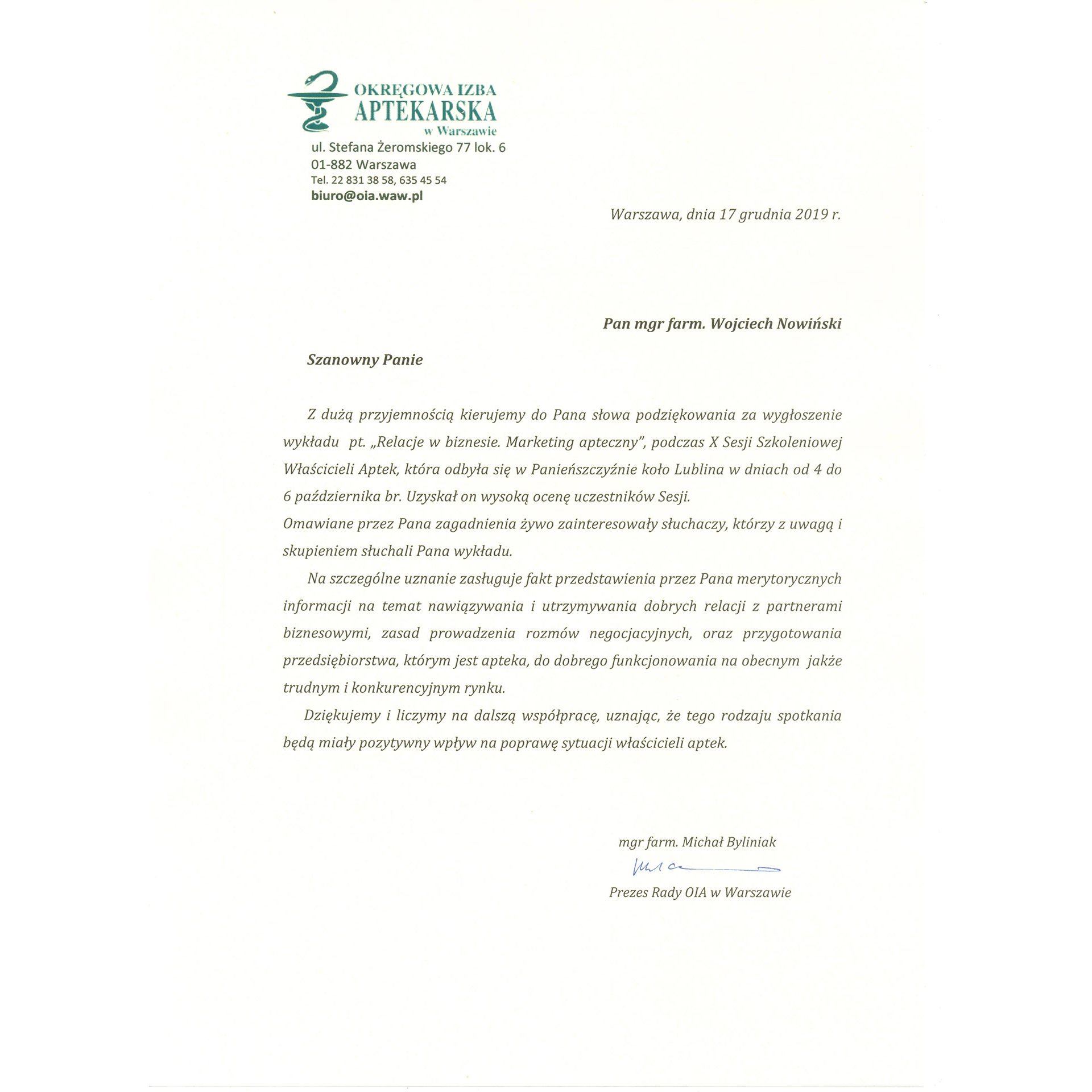 Dawniej pod nazwą „Aptekatrener” a dziś pod nazwą „WNowiński Szkolenia & Konsulting” prowadzę firmę szkoleniową.